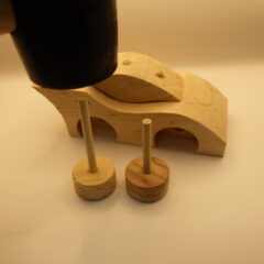 ⑤タイヤを1個付けたダボを本体に通して反対側のタイヤをダボに打ち込む